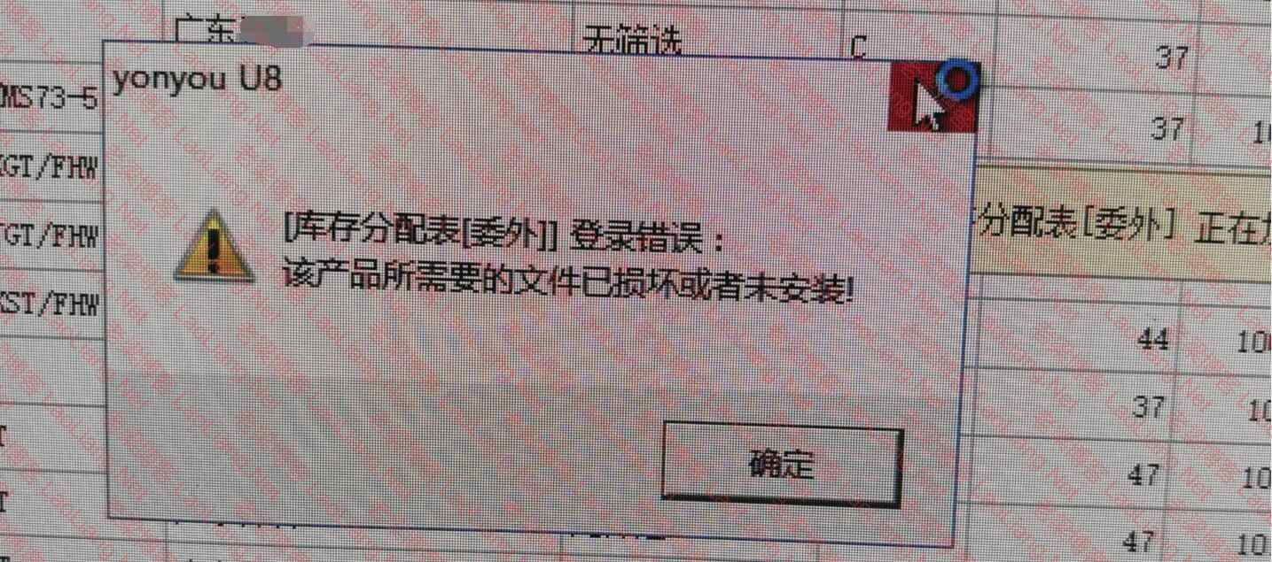 用友U8+13.0提示“[库存分配表[委外]]登录错误: 该产品所需要的文件已损坏或者未安装!”的说明