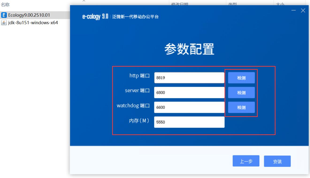 四、部署完jdk环境,右键管理员模式运行“Ecology9.00.2510.01.exe”文件进行安装,然后要测试一下端口是否可用,免得后期无法启动哦!