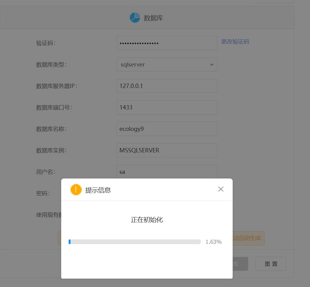 九、一切正常后,没啥问题,直接点击“初始化数据库,进行初始化数据即可,如下图所示,初始化过程时间过长,耐心等待即可!