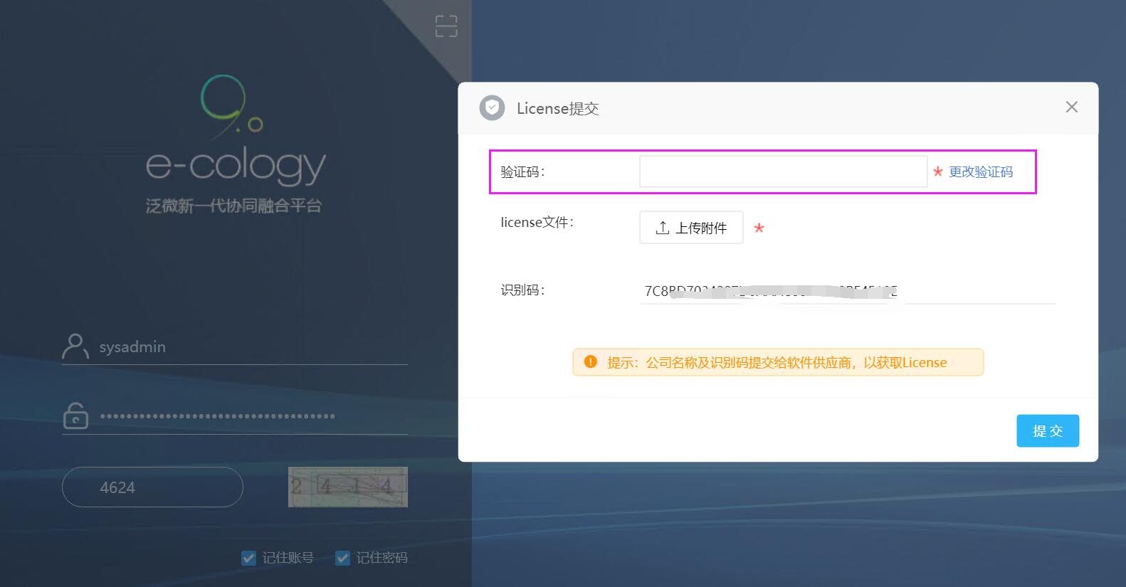 十二、输入正确的用户信息点击登录后,就需要授权,有授权直接导入即可,验证码,依然是第八步骤的验证码,直接去“\WEAVER\ecology\WEB-INF\code.key”找一下即可!