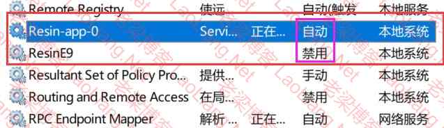 6、创建完之后,就会看到“ResinE9与Resin-app-0”两个服务,如下图所示,