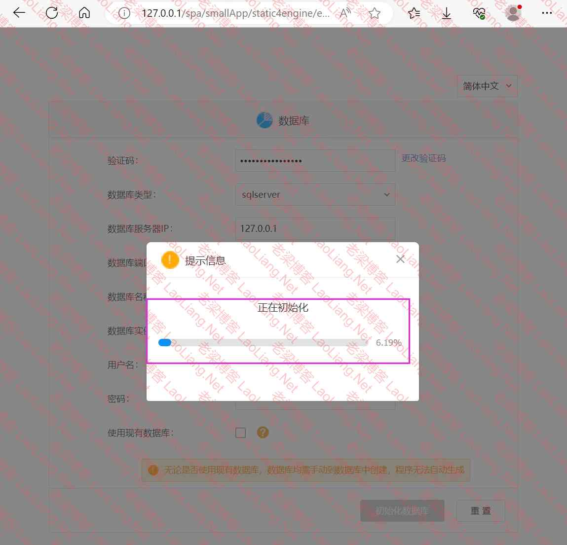 8、点了初始化数据库后,就需要耐心等待,泛微ecology9数据库初始化,整个过程预计在1-2小时!