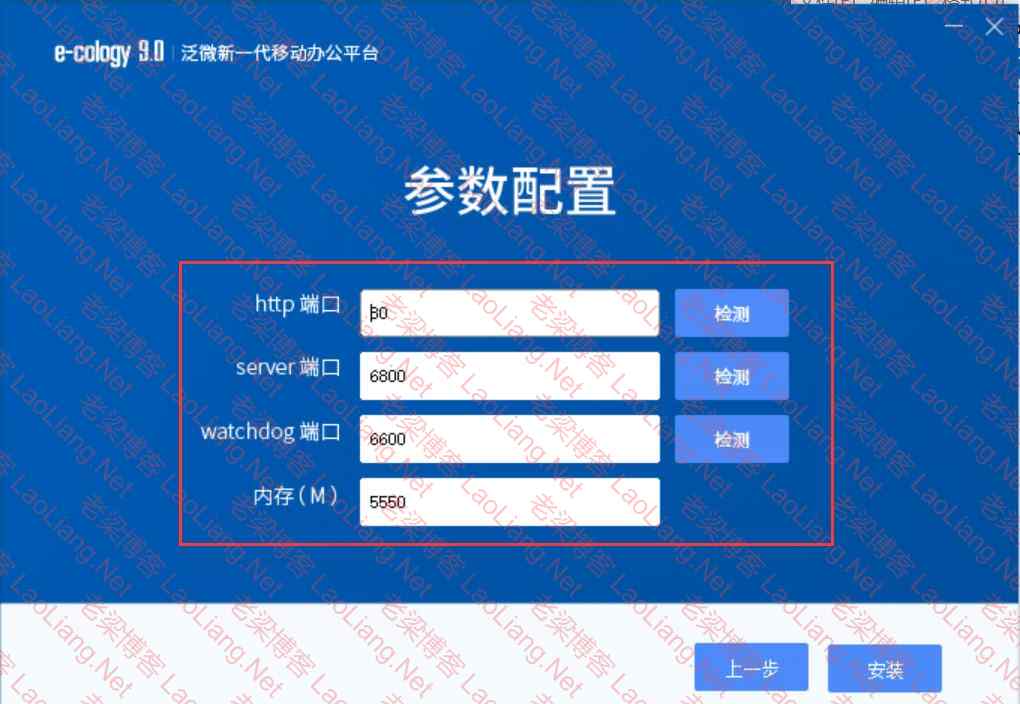 3、关于泛微ecology9端口参数配置,根据自己真实情况填写即可,最好都检测一下是否正常!
