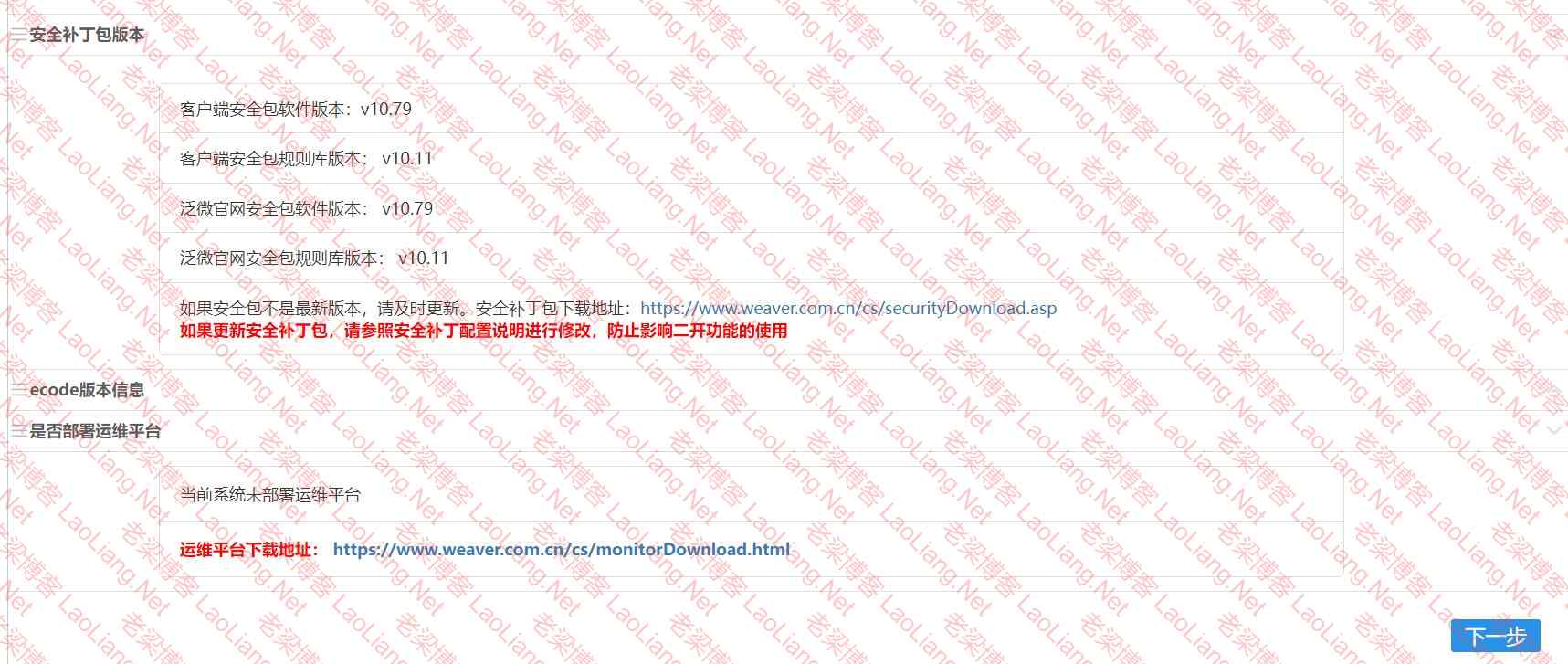 11、提交泛微ecology9授权正确后,下一步出现“安全补丁包版本”,仅作为展示,并无实际意义,直接下一步即可!