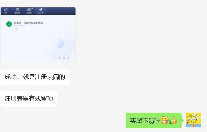 然后我给网友说应该是注册表的问题,网友也怀疑是,然后经过各种查找,最后还是注册表没有清理干净,最终结果是好的!