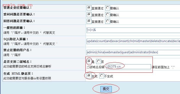 华锐B2B行业电子商务系统企业会员二级域名的设置方法