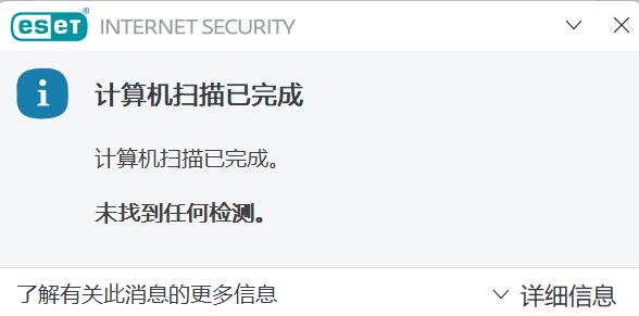 然而我的电脑没有毒我是知道的,不过就这提示也挺脑壳疼,然而就信它,来杀毒一下~~ 打开我的“ESET Security”扫描一遍,依然还是无~~