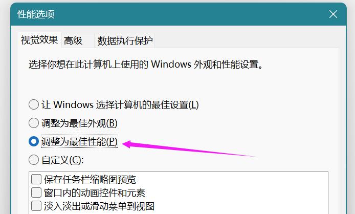 2、选择调整为最佳性能“如下图所示”,点击确定即可