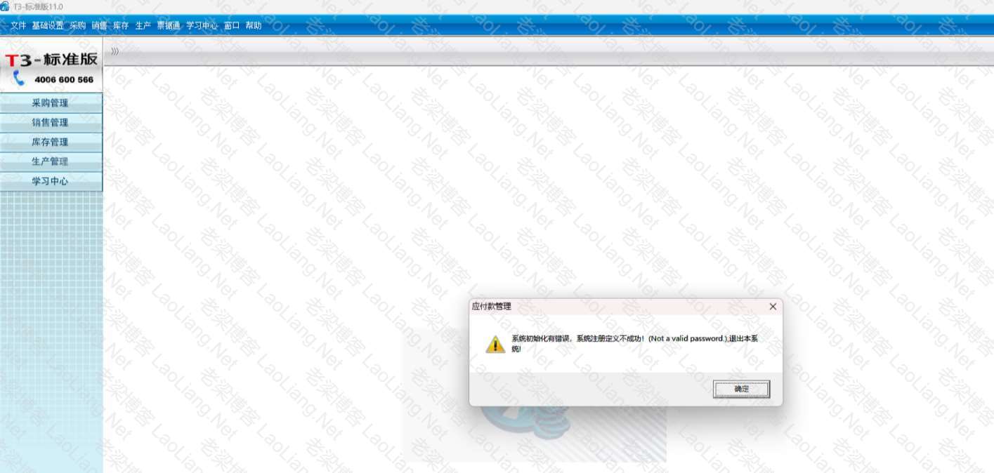 最近有不少客户说,自己家的电脑装有金蝶kis专业版、用友T3标准版、用友T6企业管理软件还有不少其他的软件,如人力信息采集软件也提示not a valid password不是有效密码,如下图各种错误所示
