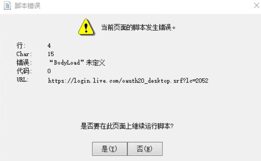 代码:0 URL:https://login.live.com/oauth20_desktop.srf?lc=2052 是否要在当前页面上继续运行脚本?