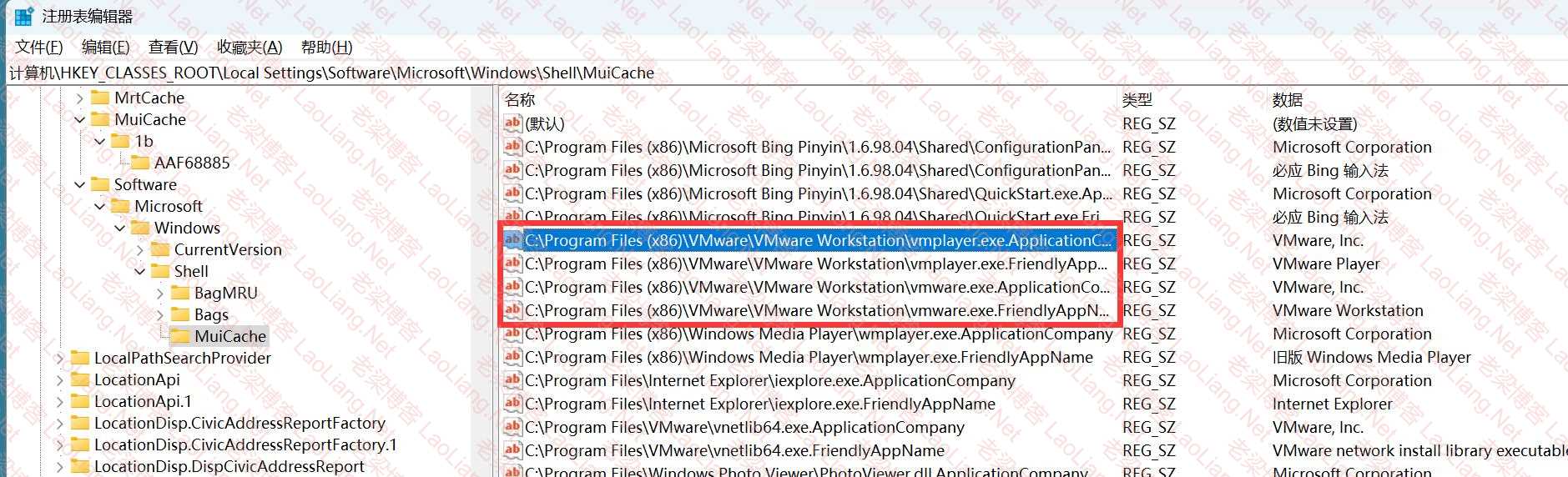 HKEY_CLASSES_ROOT\Local Settings\Software\Microsoft\Windows\Shell\MuiCache