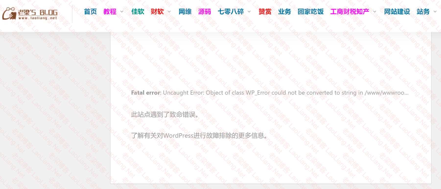 此站点遇到了致命错误。了解有关对WordPress进行故障排除的更多信息。