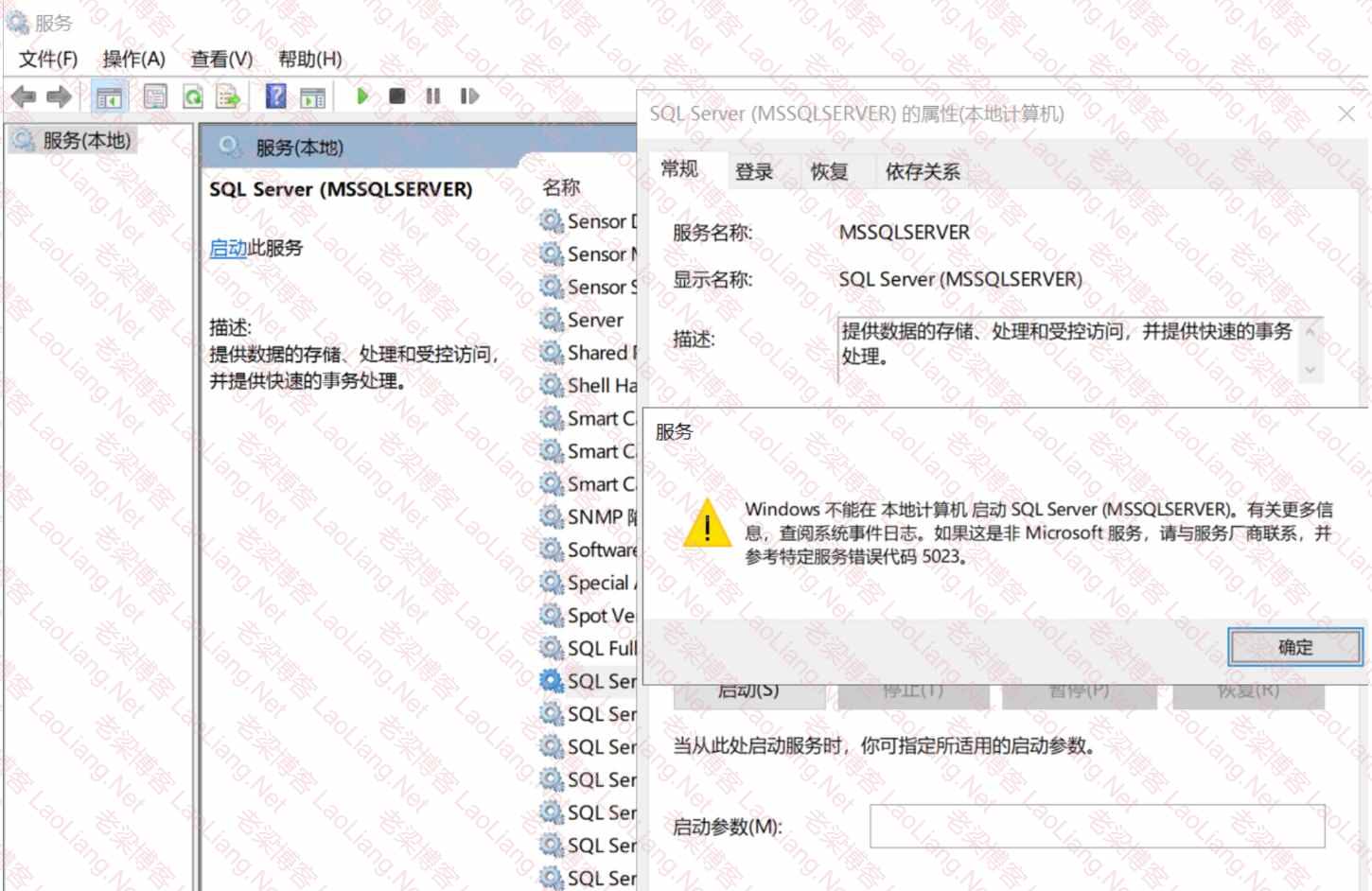 启动SQL Server (MSSQLServer) 提示“特定服务错误代码5023”的说明