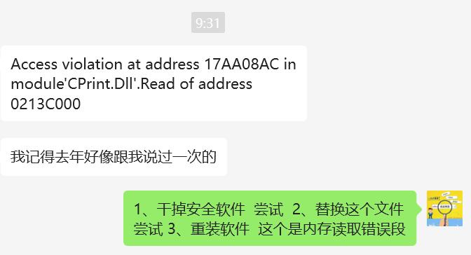 意在交流学习,欢迎赞赏评论,如有谬误,请联系指正;转载请注明出处: » 管家婆辉煌版打印提示“Access violation at address 17AA08AC in module'CPrint.Dll'.Read of address 0213C000”的说明