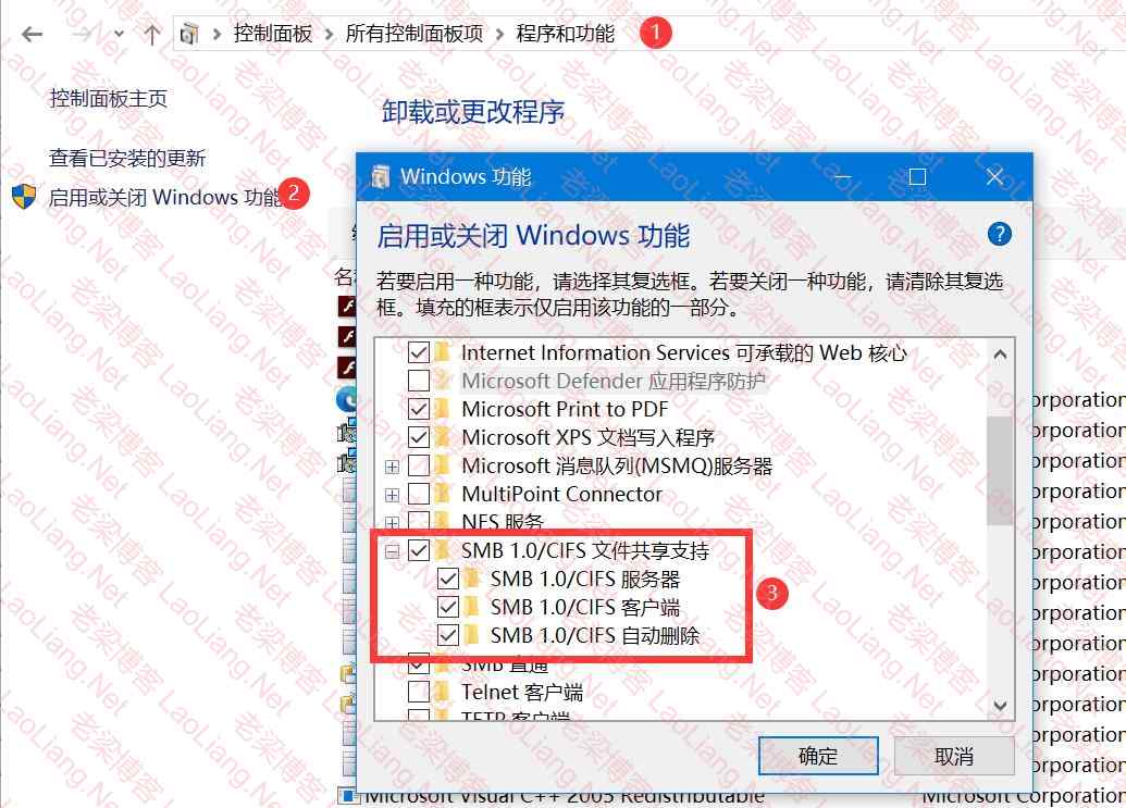 1、启用SMB 1.0/CIFS 文件共享支持: