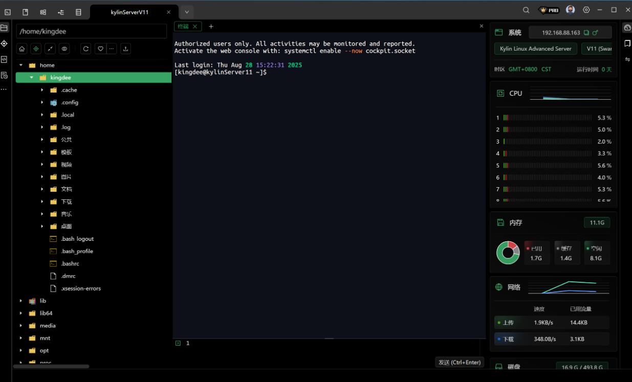 当然,也可以通过第三方工具连接银河麒麟v11高级服务器版,下图为通过XTerminal连接服务器效果图