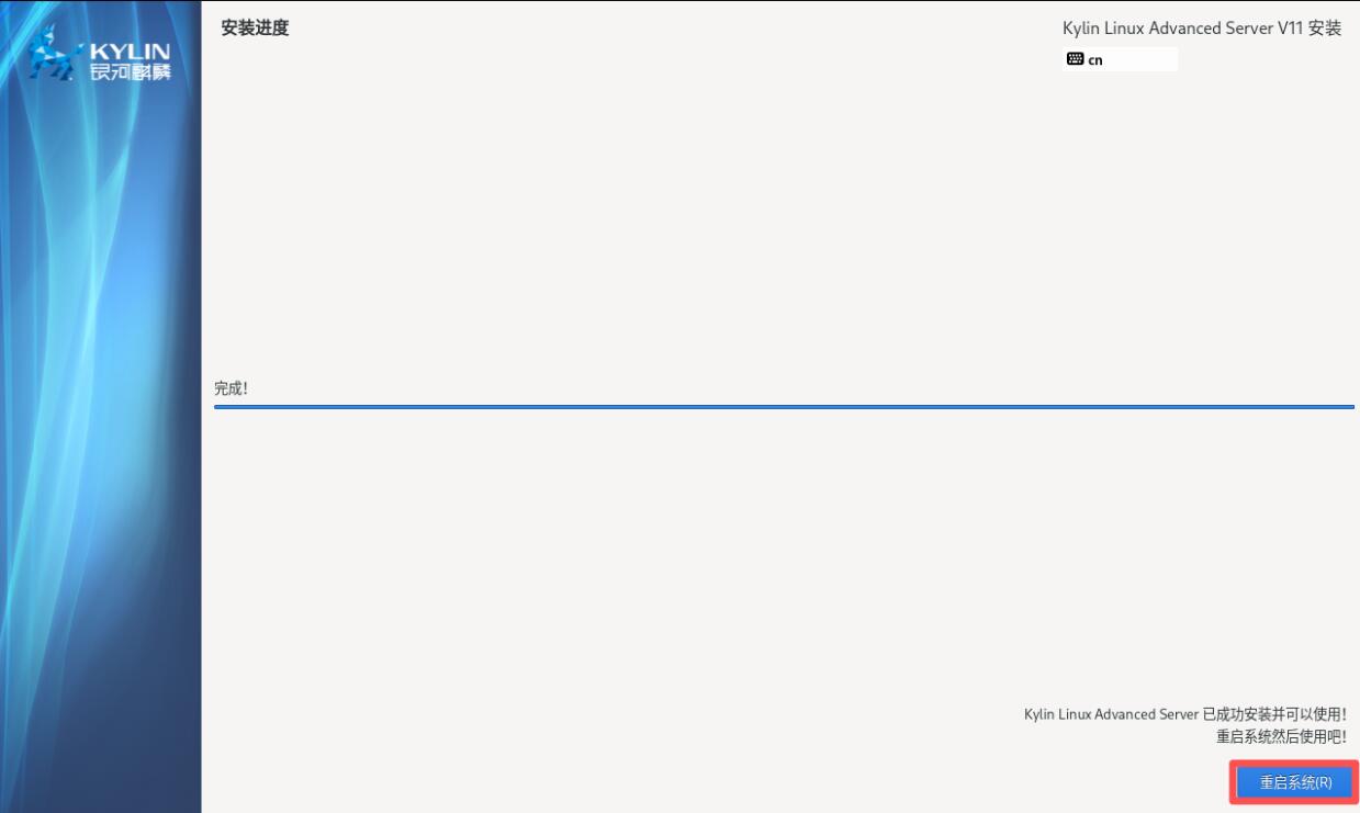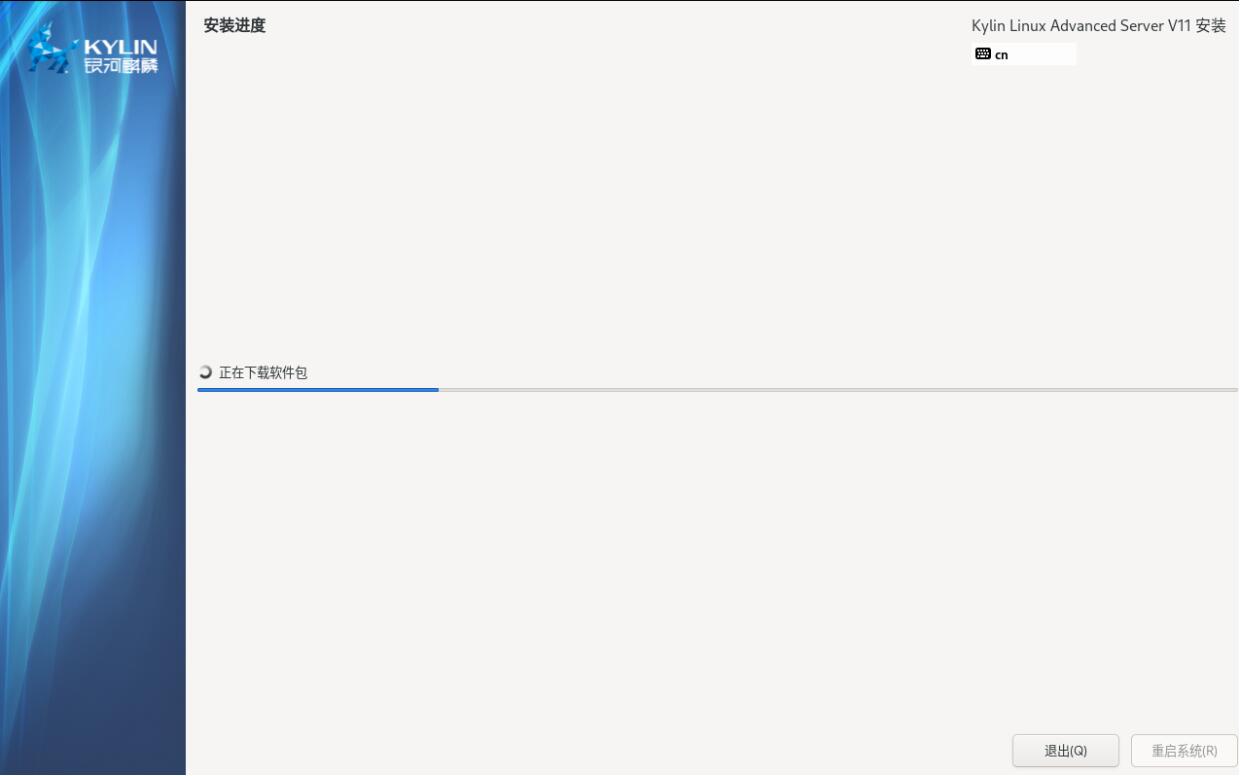 7、等待银河麒麟v11高级服务器版安装完成即可,整个过程大约需要30分钟左右,根据自己电脑硬件决定!