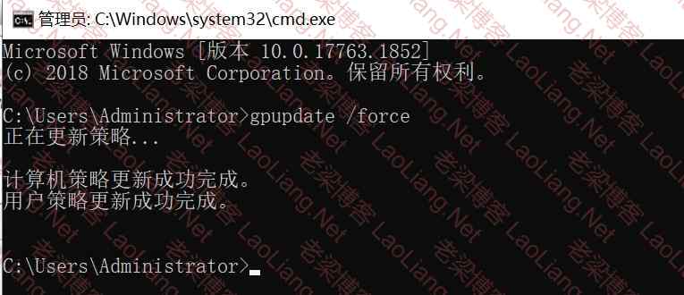 4、设置完组策略,用如下命令更新一下方可正常使用