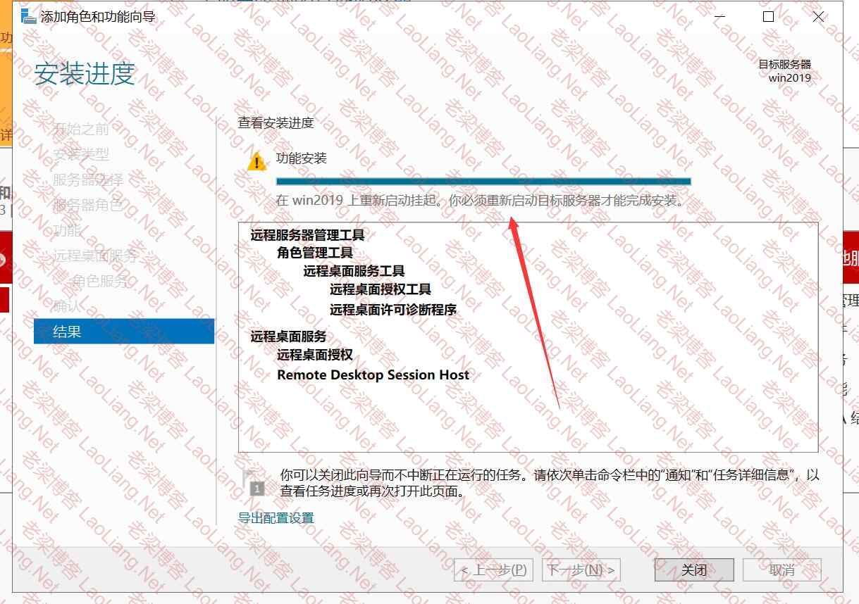 重要提示:安装 远程桌面会话主机 和 远程桌面授权 完成后,是需要重启的,勾选自动重启,重启前做好资料保存。
