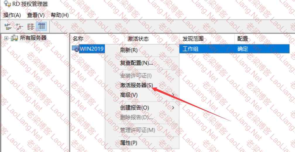 选中证书右键----选择激活服务器,如下图所示