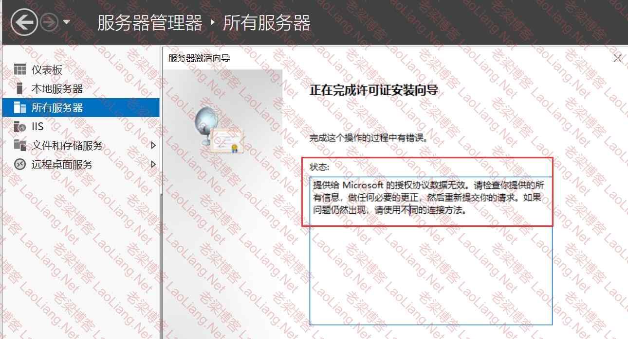 服务器系统激活RD授权管理器“远程桌面会话主机Remote Desktop Session Host”提示“提供给 Microsoft 的授权协议数据无效。请检查你提供的所有信息,做任何必要的更正,然后重新提交你的请求。如果问题仍然出现,请使用不同的连接方法。”的说明
