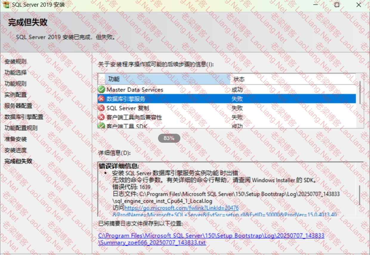昨天有网友在新买的电脑Windows 11系统上安装部署用友U8+13.0,需要用到SQL Server 2019数据库,可是如何反复安装都不成功,就是出现错误错误如下“SQL Server 2019安装已完成但失败,安装SQL Server数据库引擎服务实例功能时出错”当时着急忙解决问题,也没有截图,发现有之前的截图,错误一毛一样,就是没有记录,真是醉了~~~