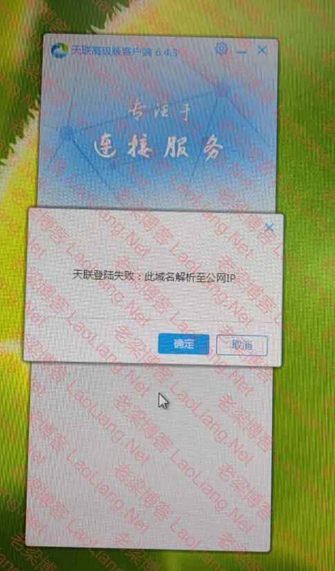 前天以及昨天,浙江的应老师都发了一条信息,显示天联高级版登录错误,提示“天联登录失败:此域名解析至公网IP”,如下图所示