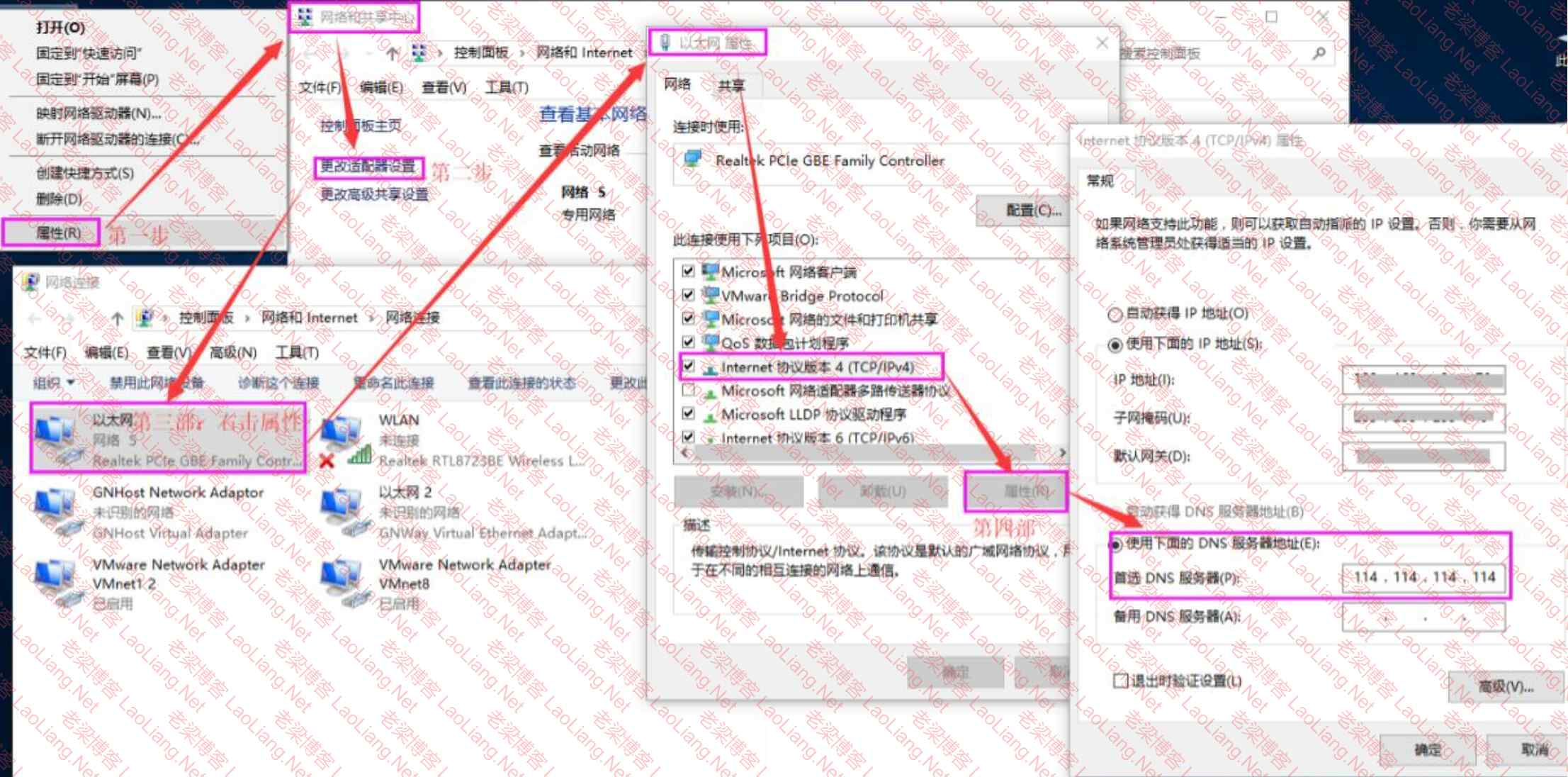 1、将本地DNS服务器地址修改为当地的DNS即可,下面是我以“114.114.114.114”做的教程,如下图所示