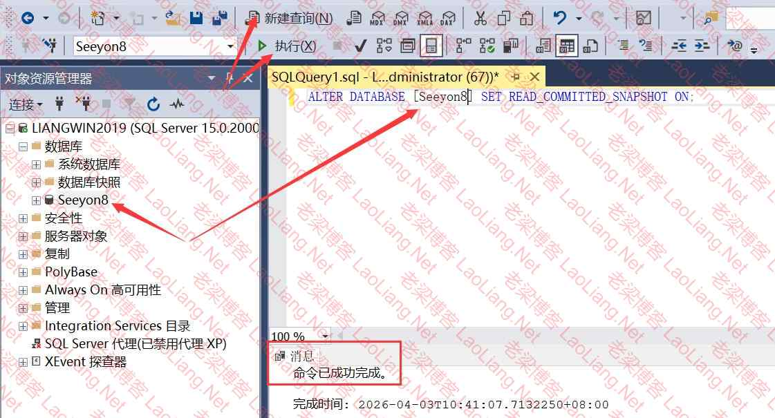 ALTER DATABASE [协同数据库名] SET READ_COMMITTED_SNAPSHOT ON;