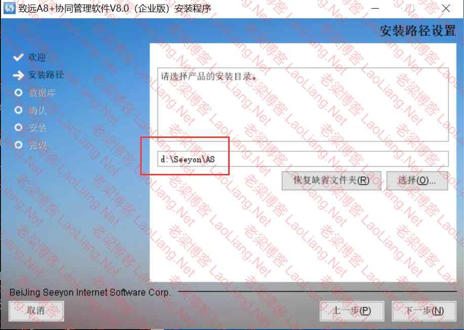 3、选择致远SeeyonA8企业版安装目录,如下图所示