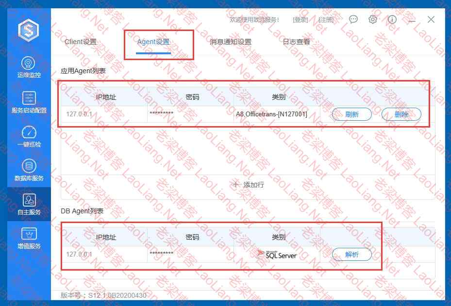 直接到自助服务-- agent设置--IP地址就填写服务器,然后进行解析即可~~如下图所示