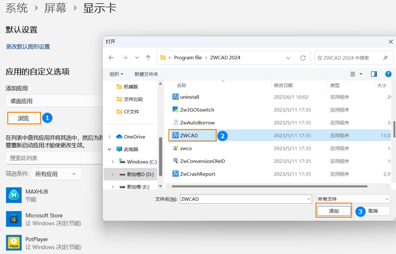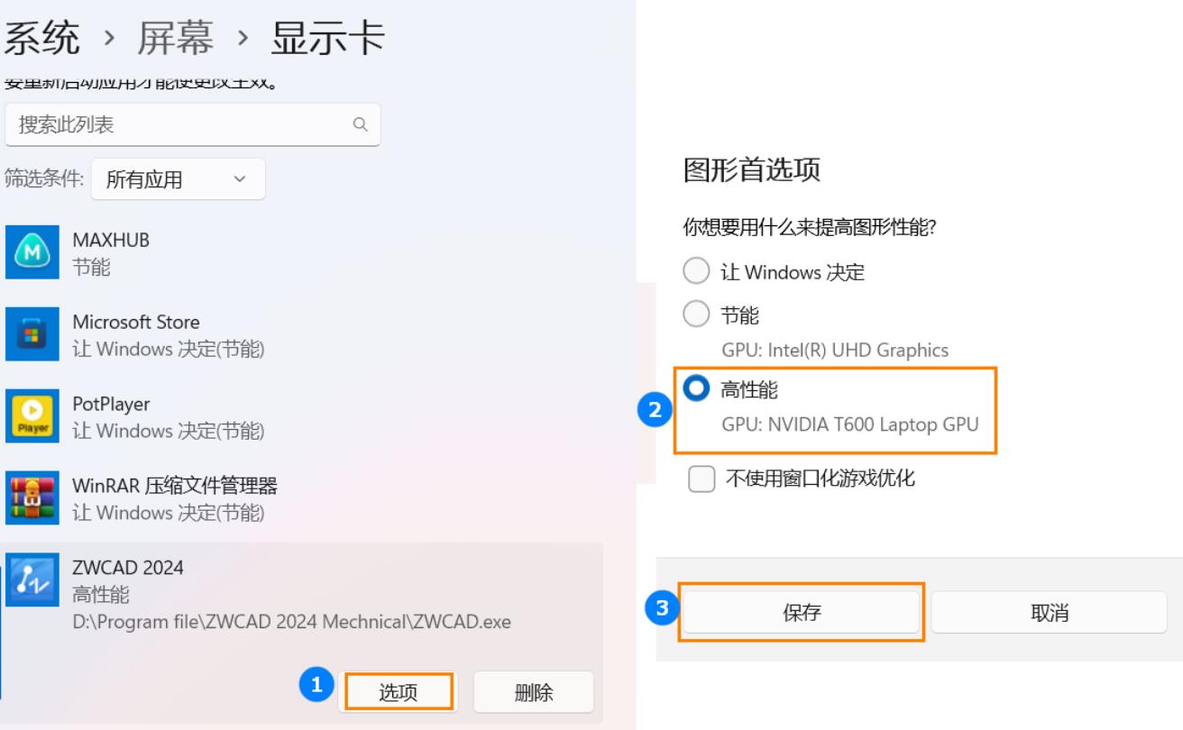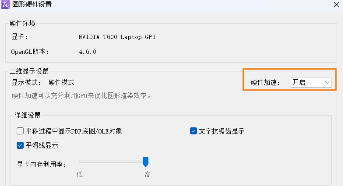 Windows11系统上开启中望CAD/AutoCAD硬件加速功能的说明