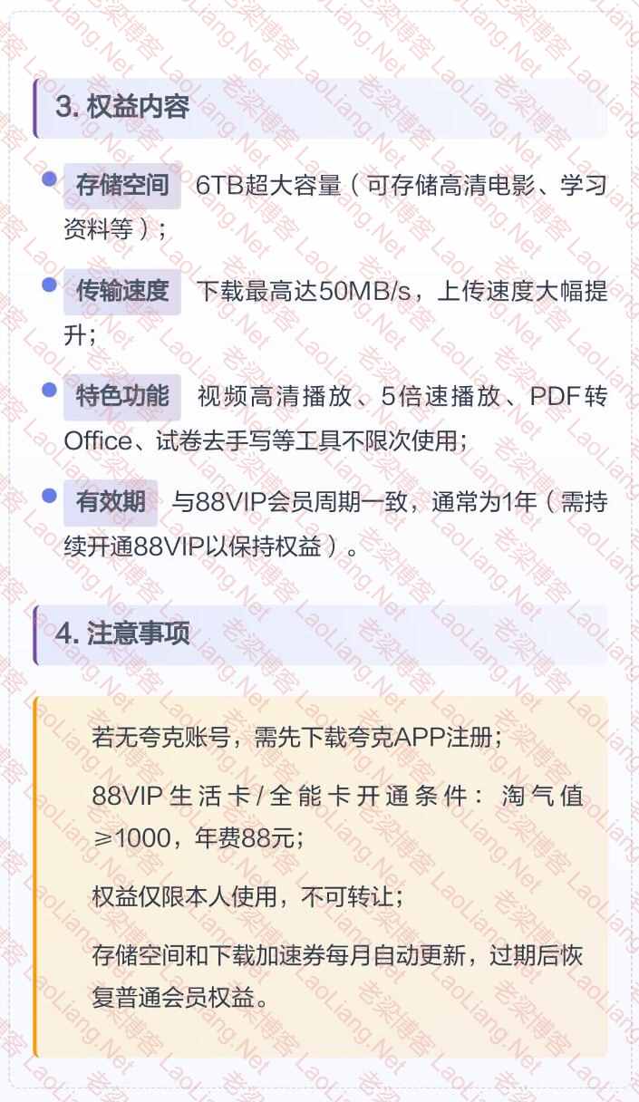没夸克账号的话,得先下载APP注册。权益只能自己用,不能转别人。存储空间和下载加速券每月自动更新。88VIP到期没续费,权益就变回普通会员级别。