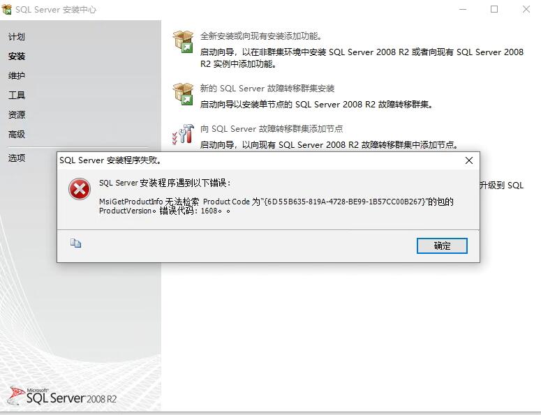 老梁(蛤蟆哥)运维技术SQL Server安装程序失败“MsiGetProductInfo无法检索Product Code为“{6D55B635-819A-4728-BE99-1B57CC00B267}”的包的 ProductVersion。错误代码: 1608” 今天在Windows 10 教育版系统中安装SOL Server 2008 R2,竟...