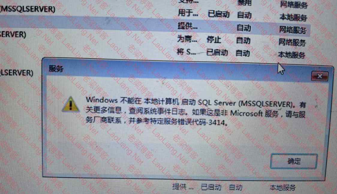 老梁(蛤蟆哥)运维技术启动SQL Server 2008R2时提示“Windows不能在本地计算机启动SQL Server (MSSQLSERVER) 特定错误代码3414”的说明 前两天有网友发了我一张图,说他家的金蝶kis专业版14.0用的SQL Server ...