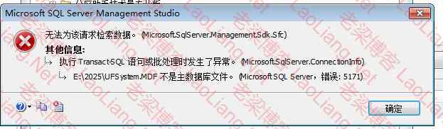 老梁(蛤蟆哥)运维技术SQL Server数据库附库出错,提示“.MDF 不是主数据库文件。 MicrosoftsOL Server,错误5171”的说明 有网友找到我说,他家的用友标准版T3不知道咋回事儿,想着出错了,重做系统是不是就好了...