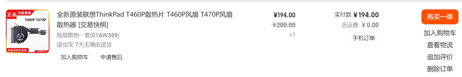 早上,咔嚓拆开的“联想ThinkPad T470P”,一顿操作猛于虎,不到一刻钟就可以正常开机使用,顺便还问了一下原来的店家,竟然没有小风扇,只能连体的“独显散热一套(01AW389)”,我干~~~