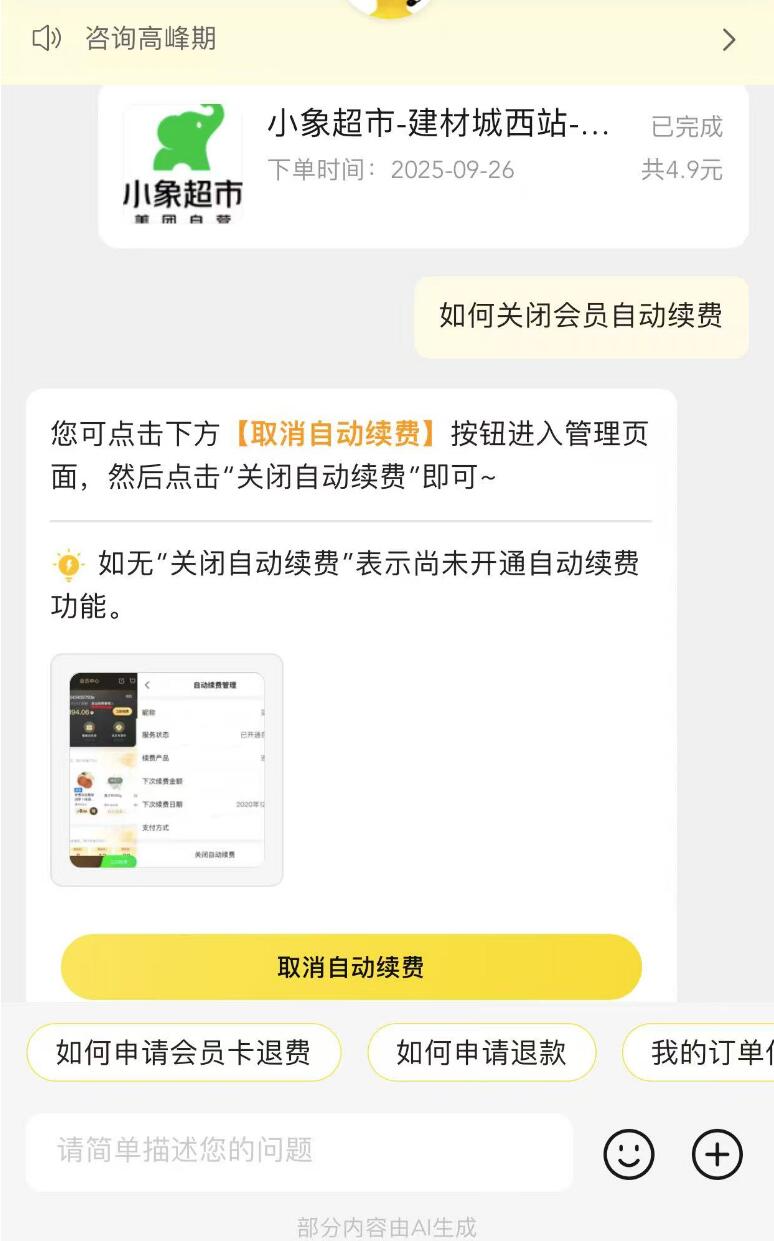 意在交流学习,欢迎赞赏评论,如有谬误,请联系指正;转载请注明出处: » 小象超市(原美团买菜)如何取消连续包月会员