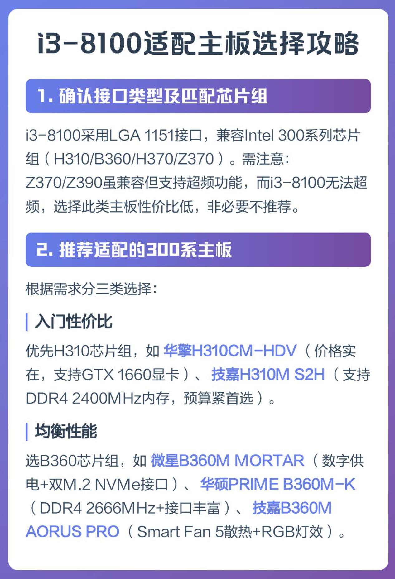 💻英特尔® 酷睿™ i3-8100处理器适配主板选择攻略✅