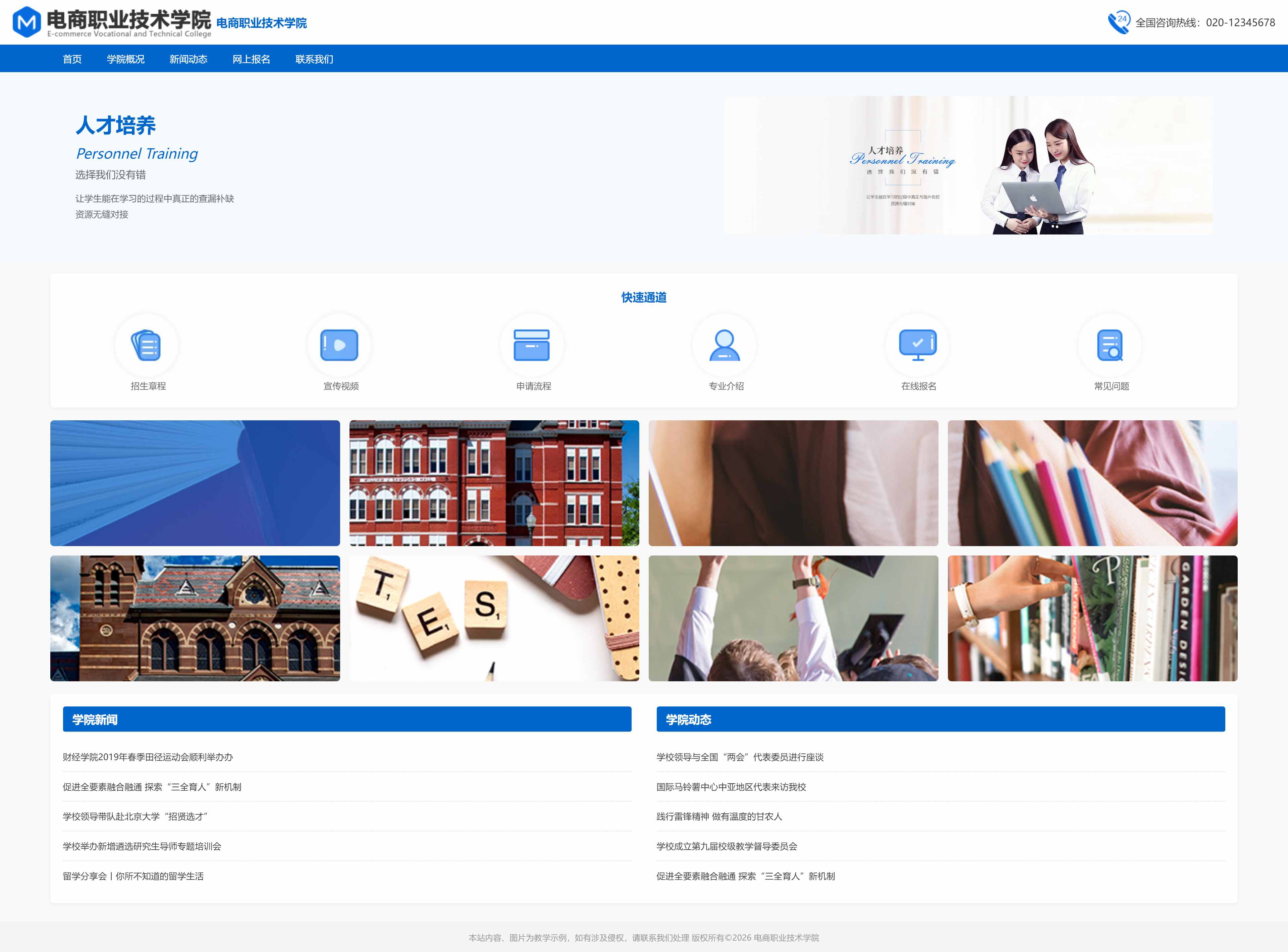 哈哈~~给谭爷做了一个“电商职业技术学院”Html页面