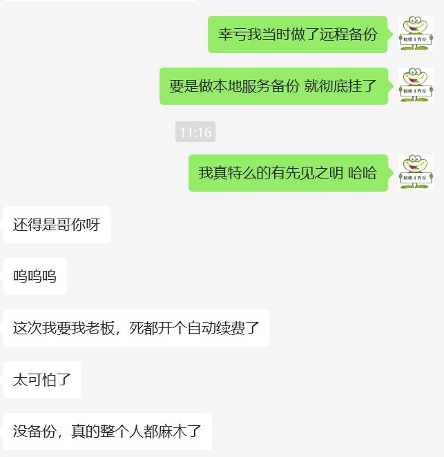 意在交流学习,欢迎赞赏评论,如有谬误,请联系指正;转载请注明出处: » 客户2019年买的阿里云服务器未续费-服务器已被销毁~幸亏我当时做了远程备份!